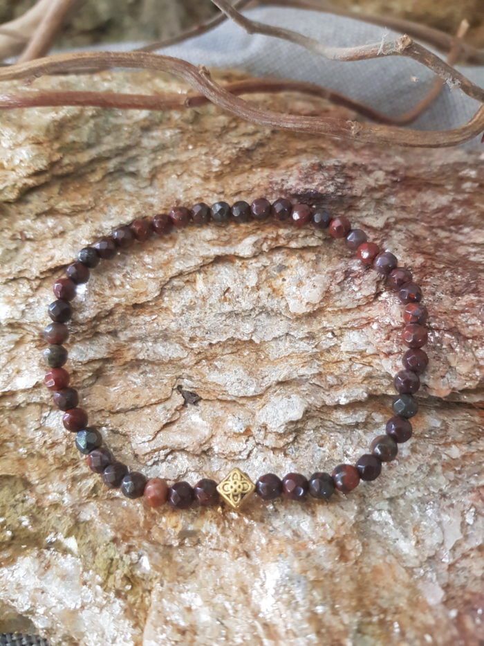 Le Jaspe Héliotrope Sanguin remédie au manque de confiance en soi en conférant force morale et courage pour venir à bout de la timidité et de la peur. Elle est aussi un bon remède aux chagrins du cœur. Protectrice des voyageurs, elle prévient aussi les accidents, les peines et fatigues du voyage. Cette pierre est un puissant rempart contre les émotions et sensations négatives.